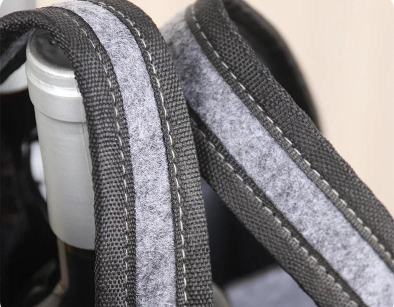 Característica | La bolsa de fieltro para botellas de vino mantiene las botellas de vino separadas y evita que choquen entre sí. También es extraíble, ¡puede usar la bolsa de vino para un picnic o para transportar agua, bebidas o cerveza! |