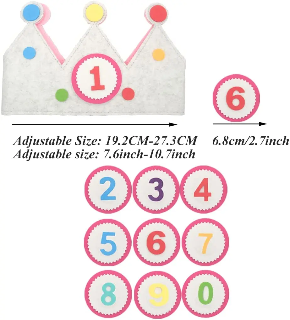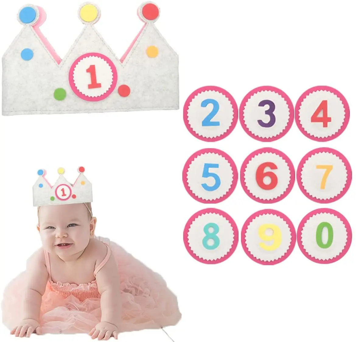 Gorro de tela blanca con números intercambiables del 1 al 9 para niñas recién nacidas, corona de fieltro y 1/2 cumpleaños, para hacer tú mismo