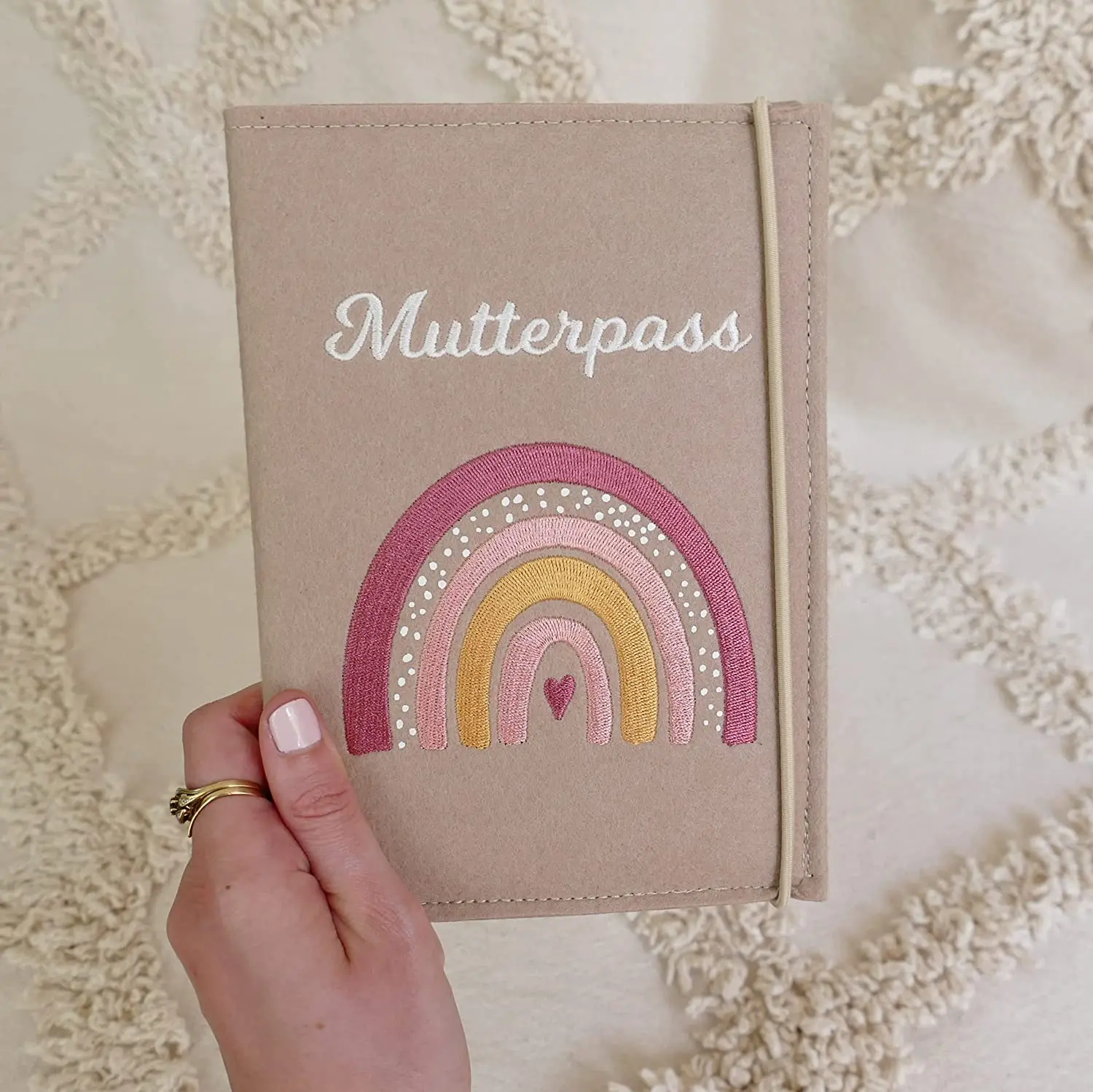 Nuevo arco iris alemán de fieltro para mamá, madre, pase de maternidad, registro de impfpass