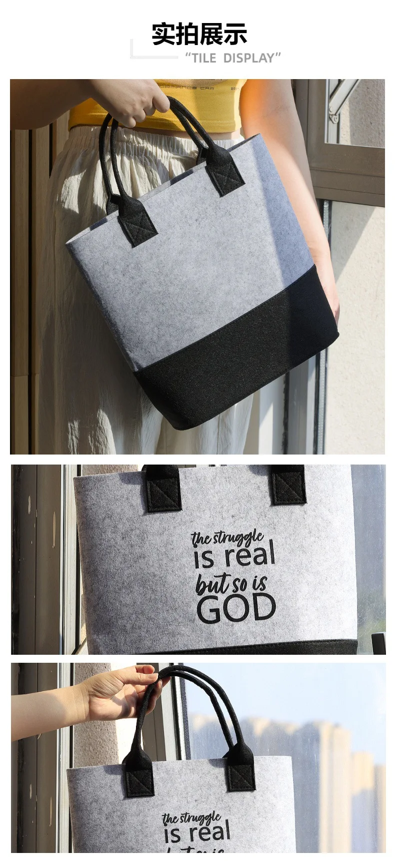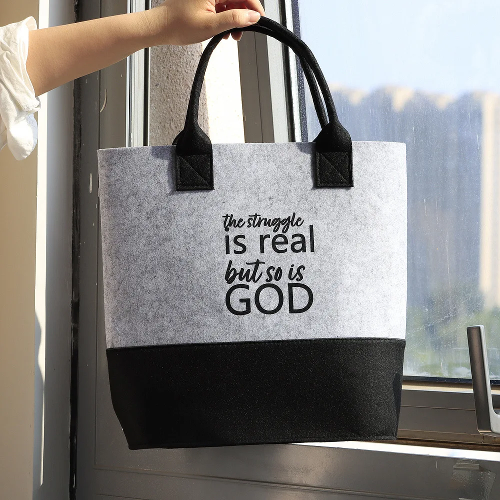 Bolso de mano de fieltro personalizado, bolso de mano de gran capacidad, bolso de compras de fieltro para comestibles, playa, viajes, estudio, gimnasio, regalos