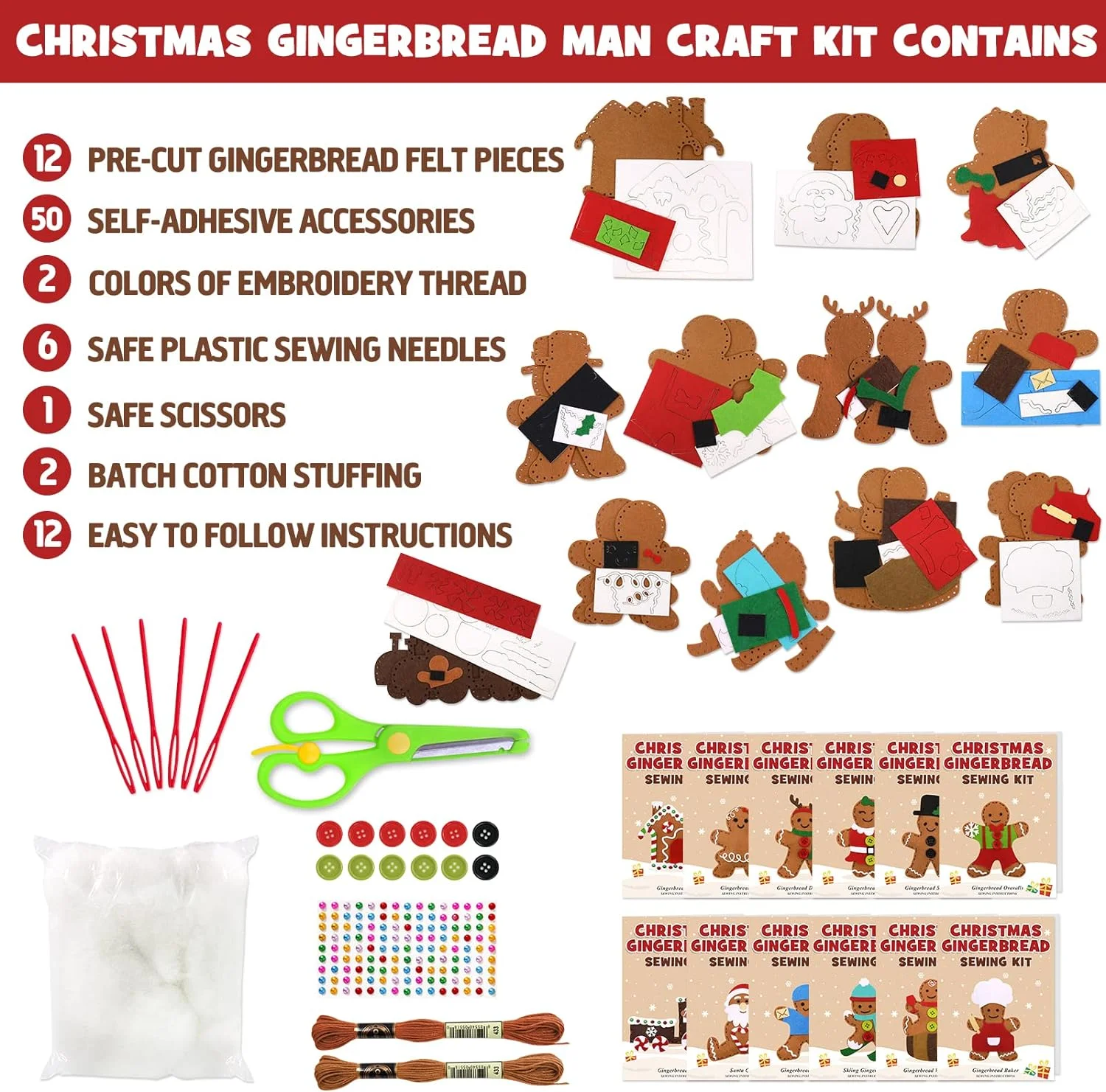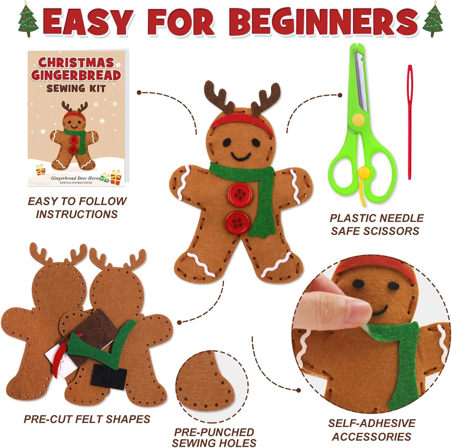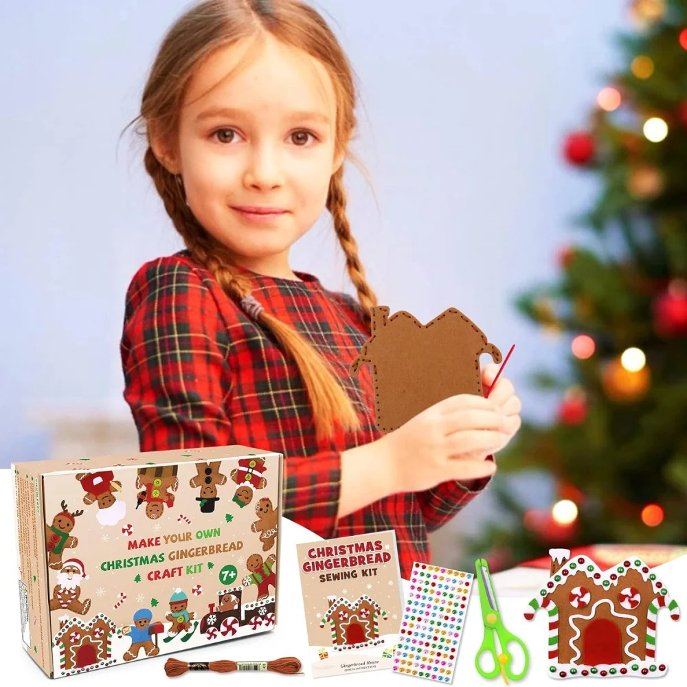 Venta caliente de adornos navideños de jengibre, kit de costura de fieltro, juguete para niños, decoración navideña, regalo