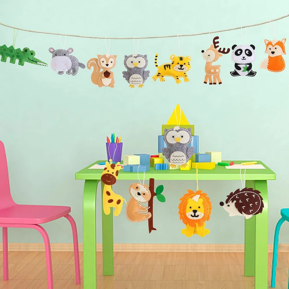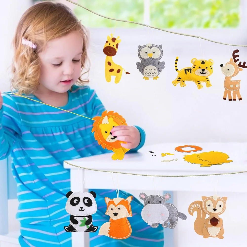 Juguete educativo de dibujos animados para niños, adorable kit de manualidades de costura de fieltro con animales del bosque para regalo del Día del Niño