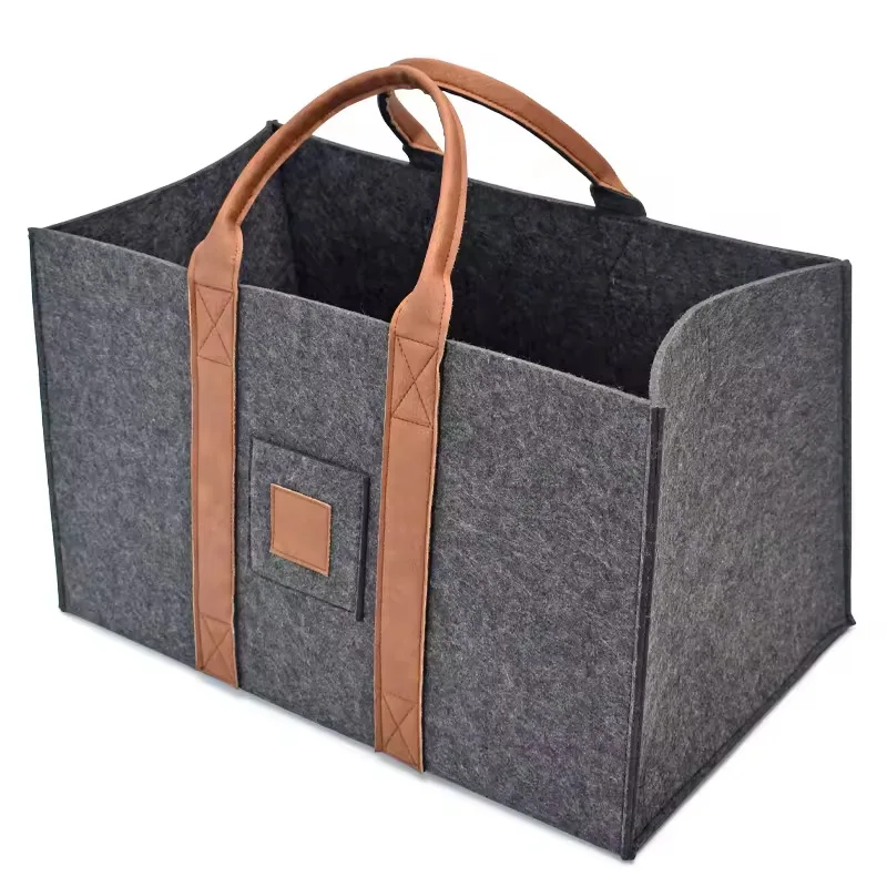 Bolsa portátil de fieltro para leña, bolsa grande para leña, bolsas de almacenamiento de poliéster